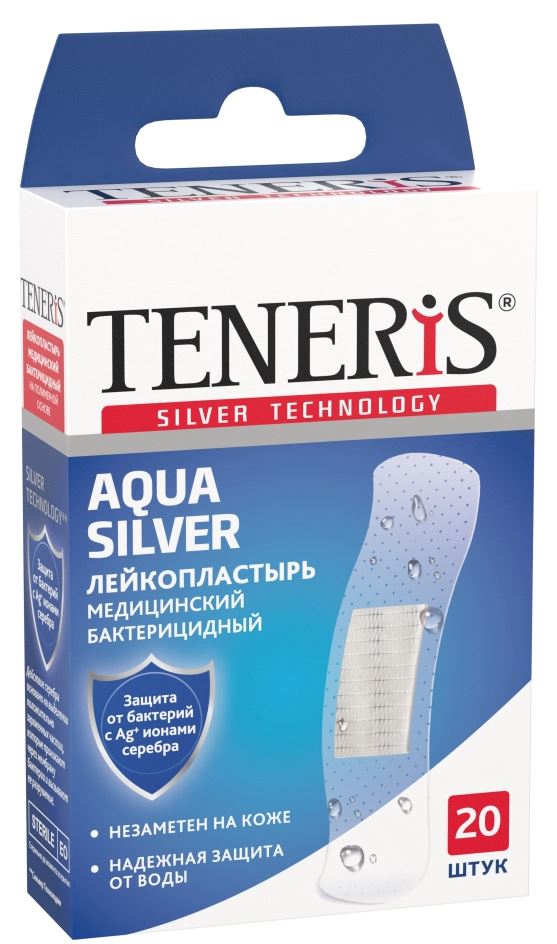 - Чтобы купить Лейкопластырь бактерицидный Teneris Aqua Silver 7,6х1.9см 20шт совершите всего несколько шагов: укажите количество продукта и нажмите на кнопку «Купить».